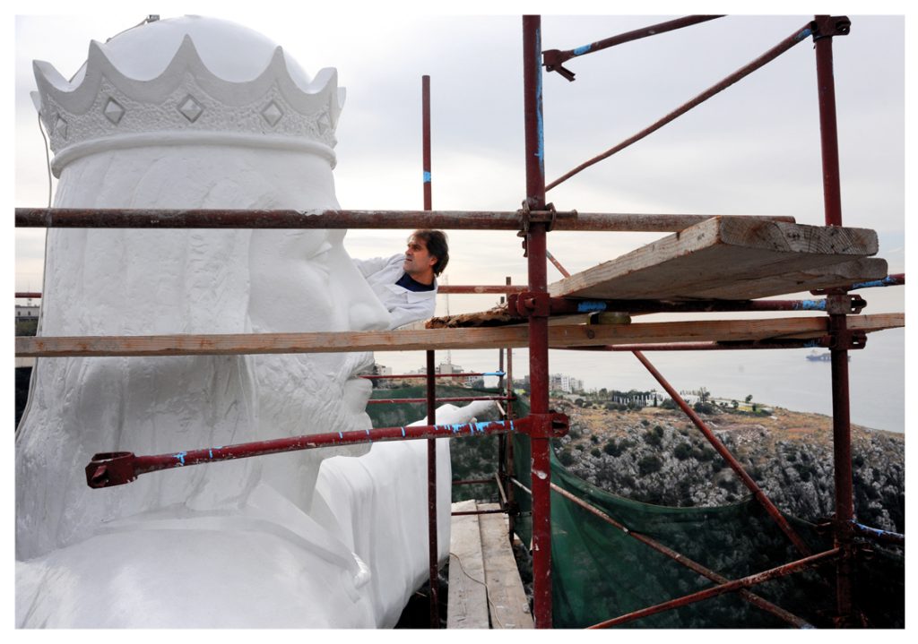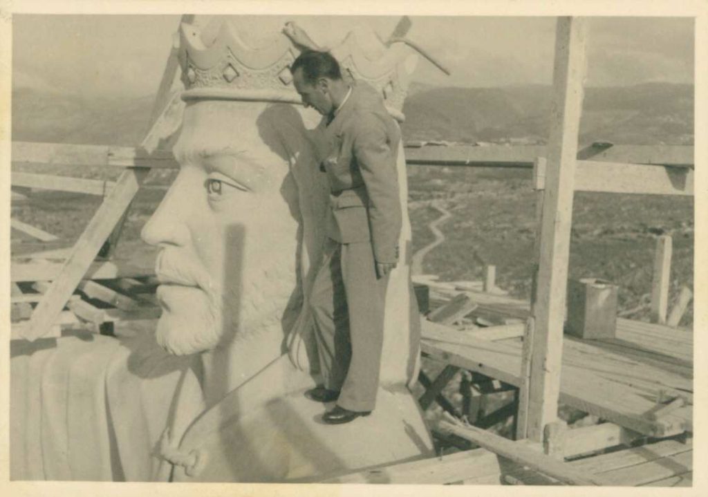 The idea of erecting a statue for Christ the King preoccupied Blessed Abouna Yaacoub. He began work in 1950. During work, the workers discovered an underground natural grotto. As soon as he heard the news, Abouna Yaacoub exclaimed with joy: “This is for the Queen. There can be no King without a Queen”; thus, the place is arranged to be a shrine for the Virgin, Queen of the Universe. In 1951, he built the church, crowning its dome with a statue of Christ the King reaching 12 meters in height and 75 tons in weight.