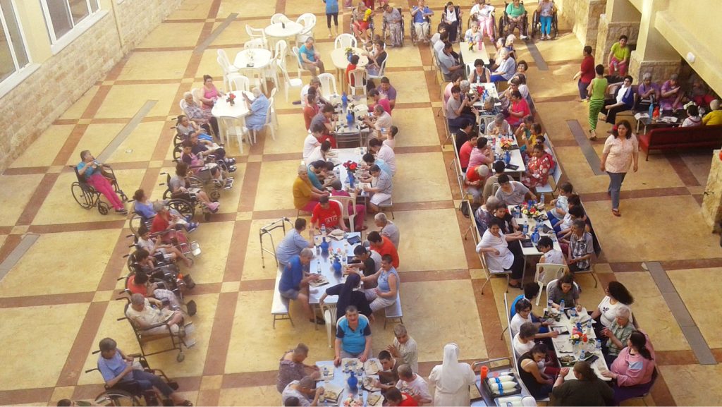 Pour que l’institution puisse poursuivre pleinement sa mission auprès des filles handicapées, il fallait entamer urgemment la restauration de tous les bâtiments dont une grande partie s’était affaissée au fil des années. Après de longues études, les ingénieurs ont préparé un nouveau dossier, en fonction des besoins urgents et manquants, et de la façon dont les services devraient être interconnectés, dans le but de faciliter le travail, et ce, conformément aux normes propres des institutions qui s’occupent des personnes handicapées. Ainsi, avec l’aide de nos généreux bienfaiteurs, le projet a été exécuté par étapes, jusqu’à ce que l’hôpital fût achevé par ses différents services, comprenant 290 lits. À noter que ce projet a créé une ambiance de joie et de réconfort pour les patientes handicapées et le personnel, accomplissant ainsi la mission du Fondateur, le Bienheureux Abouna Yaacoub.