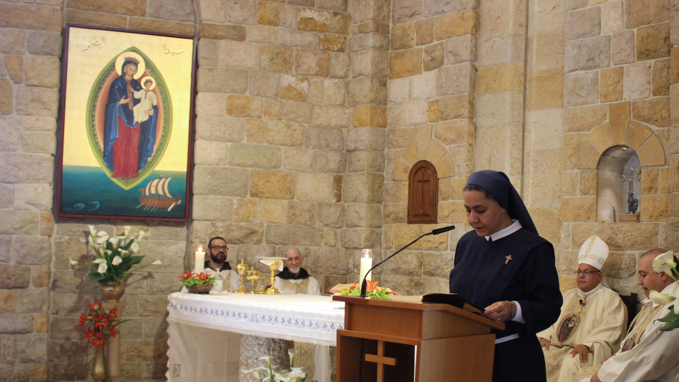 In the heart of the church-shrine we find the statue of Our Lady of the Sea which symbolizes the Virgin Mary holding baby Jesus and at her feet a ship embarked by travelers and emigrants. Abouna Yaacoub wanted to put those travelers under her protection so that she could bring them back to their homeland safely. He also mentioned this intention in many prayers and songs he composed. Until today, the Sisters put all the Lebanese people spread in the four corners of the world under her protection, and continue to celebrate the feast of Our Lady of the Sea on May 3 of every year.
