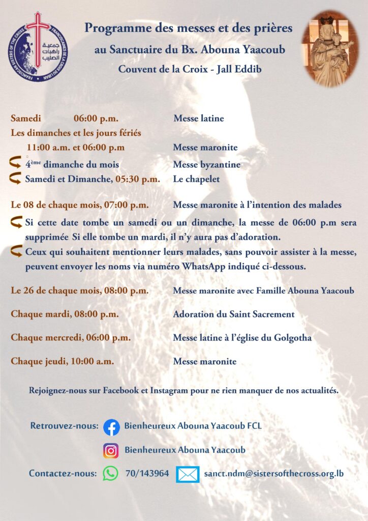 Programme des messes au Sanctuaire du Bx. Abouna Yaacoub